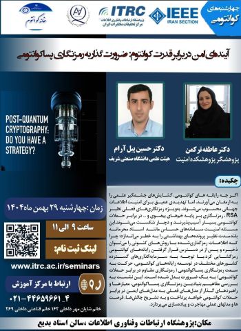 پژوهشكده امنيت فعاليت هاي پژوهشي در راستاي برنامه ریزی و اقدام به موقع جهت ارتقا سطح امنیت در حوزه ارتباطات و فناوري اطلاعات ، انجام مي دهد.