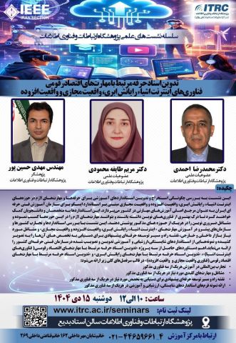 *زمان:* دوشنبه  15 دی ماه ساعت  10 الی 12 *مکان:* پژوهشگاه ارتباطات و فناوری اطلاعات -  طبقه M- سالن استاد بدیع لینک ثبت نام: https://www.itrc.ac.ir/seminars