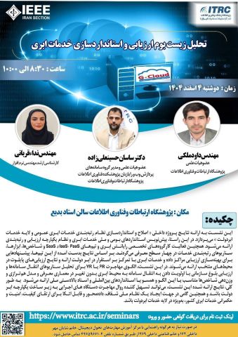 زمان: دوشنبه ۴ اسفند ماه ۱۴۰۴  ساعت: ۸:۳۰ الی ۱۰  مکان: پژوهشگاه ارتباطات و فناوری اطلاعات (سالن استاد بدیع)