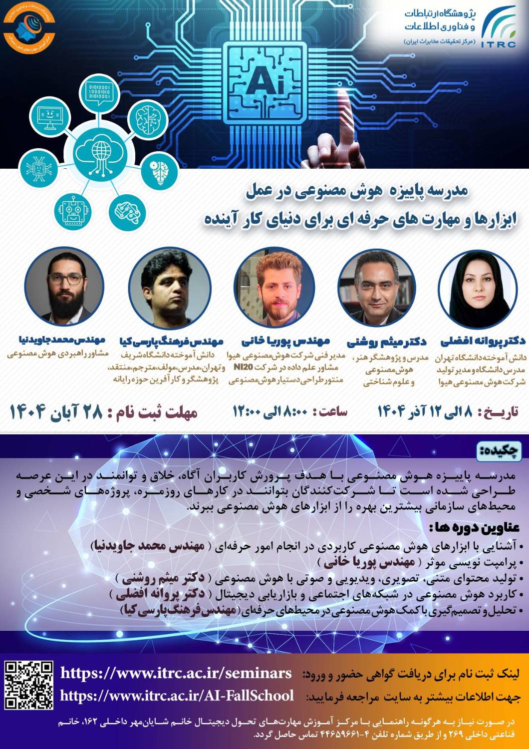 جهت اطلاعات بیشتر به سایت مراجعه نمائید: https://www.itrc.ac.ir/AI--FallSchool
