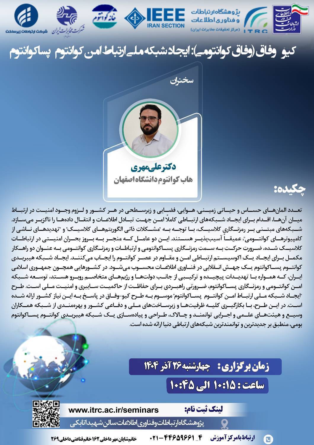 *مکان:* پژوهشگاه ارتباطات و فناوری اطلاعات- طبقه دوم- سالن شهید اتابکی